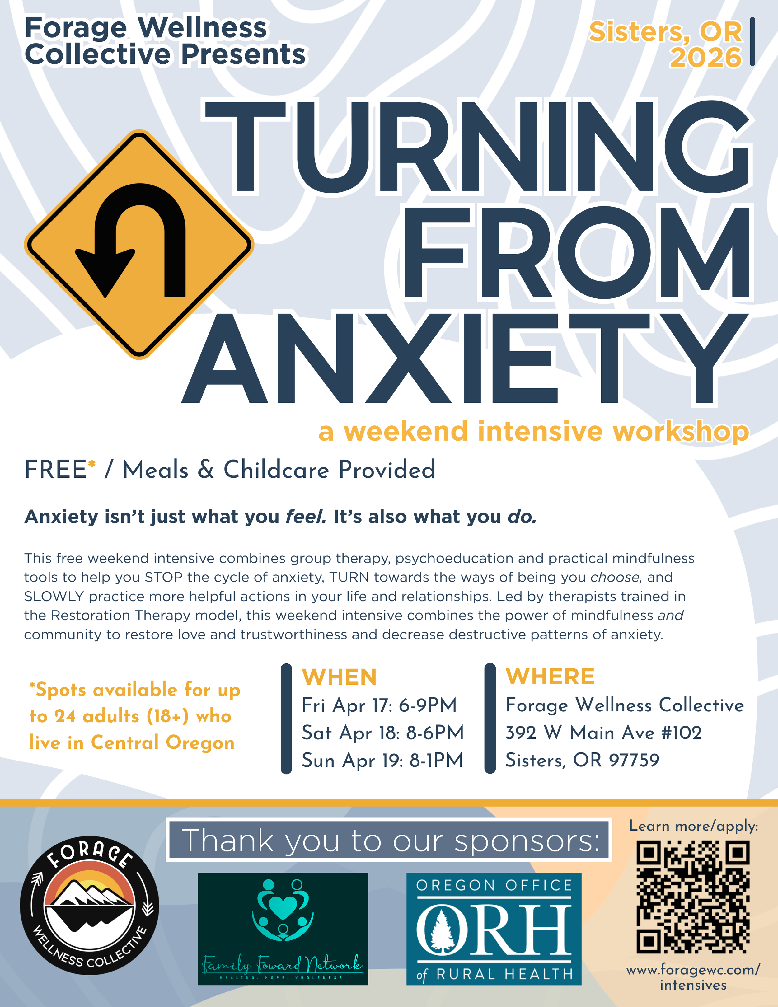 This Spring, Forage Wellness Collective is partnering with the Family Forward Network to host a FREE Turning From Anxiety Intensive in Sisters, Oregon from Friday April 17th-Sunday April 19th.
